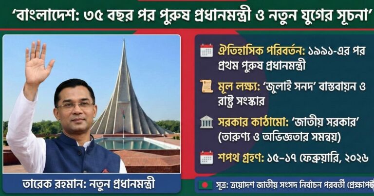 বাংলাদেশের রাজনৈতিক ইতিহাসে এক অভূতপূর্ব পরিবর্তনের সাক্ষী হতে যাচ্ছে দেশবাসী। ত্রয়োদশ জাতীয় সংসদ নির্বাচনে নিরঙ্কুশ বিজয়ের মাধ্যমে বাংলাদেশের নতুন প্রধানমন্ত্রী …