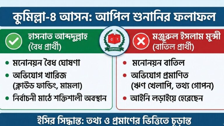 বাংলাদেশের নির্বাচনী রাজনীতিতে কুমিল্লা-৪ আসনটি এখন আলোচনার তুঙ্গে। সম্প্রতি নির্বাচন কমিশনে (ইসি) অনুষ্ঠিত আপিল শুনানিতে এই আসনের সমীকরণ পুরোপুরি বদলে …
