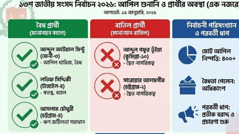 আপনি কি ২০২৬ সালের আসন্ন ১৩শ জাতীয় সংসদ নির্বাচনের প্রার্থী তালিকা নিয়ে চিন্তিত? নির্বাচন কমিশনের (EC) সাম্প্রতিক আপিল শুনানির পর …